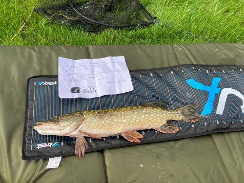 3. Steffen. En gedde på 64cm, der kom på land efter en 10 minuters svømmetur i