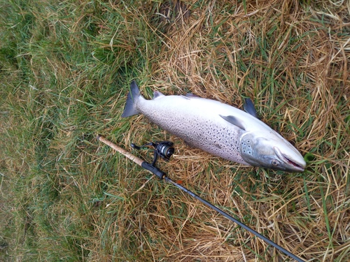 Jeg overlistede denne fine fisk i åen i morges på 76cm og 5.3kg.