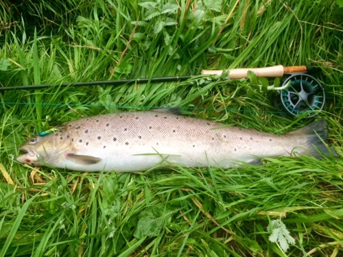 Min overraskelse var derfor stor, da jeg fik kram i næste kast og en havørred viste sig at blive overladt. Den havde vældige kræfter og nåede adskillige svømmeture inden jeg gled i åen og nettede den. En velproportioneret hun på 63 cm.